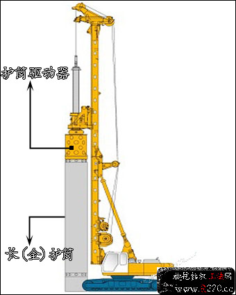 护筒作用:护:即防护.保护的意思,因此护筒就是对设备.人员起到防范.保护的作用。 ![]() 护筒规格: 直径:护筒直径一般大于桩径20cm,比如一米的桩径,护筒直径应为1.2米。 ![]() 长度:视地质.地下水而定,多数在2~4米之间,有的工地甚至达到10米,有的则无需下护筒。 ![]() 技术要求 中心偏移:规范为5cm内。 垂直度:允许偏差1%度。 注:中心和垂直度偏差首先检验不合格,同时提钻时刮护筒,严重时导致护筒底沿变形及护筒周围塌方。 ![]() 下护筒方式 扩孔器:开孔时安装在钻斗顶板边缘处,边钻进边扩孔,扩孔直径视地质而定,可略小于护筒直径,让其孔壁与护筒产生摩擦阻力;扩孔深度略短于护筒长度,让底沿具有承载力,同时也能起到导向作用,预防提钻刮护筒 ![]() 护筒驱动器:如地质.地下水因素或工艺要求,导致扩孔器满足不了施工或效率低情况下,可使用护筒驱动器下护筒,护筒驱动器与扩空器相比,效率高,能下能拔更长的护筒,同时对偏差及垂直度易于控制。 ![]() 震动锤:如在江上.海上施工,由于桩径大护筒长,此时旋挖已满足不了下护筒的需求,可使用履带吊.震动锤下护筒。 ![]() 全护筒搓管机:适用于咬合桩,复杂地质施工,可配合冲抓斗或旋挖钻施工